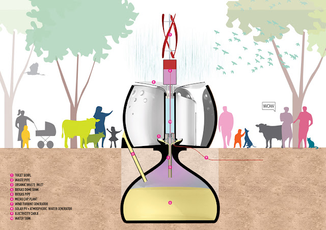 O estúdio Spark desenvolveu um “banheiro”, impresso em 3D e facilmente transportável, que pode ser instalado nas áreas mais remotas e é capaz de transformar os dejetos humanos em eletricidade.
